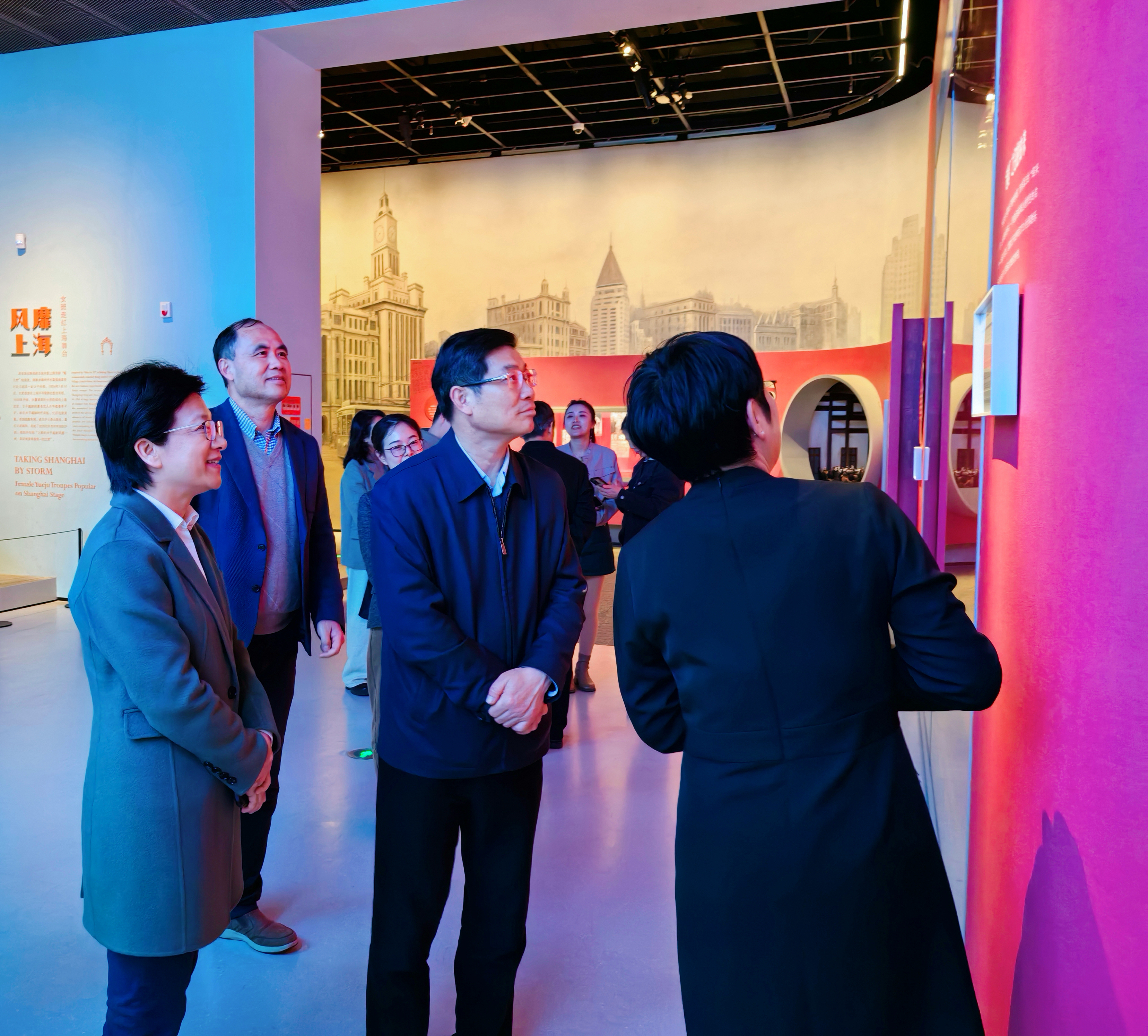 座谈会后,干武东一行在潘超英的陪同下,参观考察了嵊州越剧艺术学校、越剧小镇和越剧博物馆,实地考察了解嵊州越剧文化的传承与发展情况。