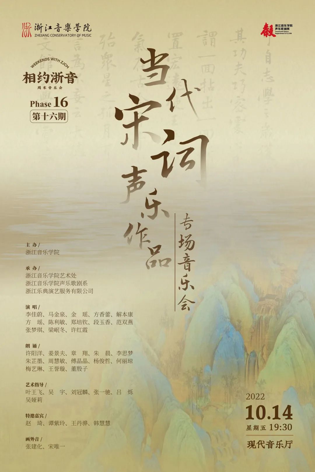 「相约浙音」周末音乐会 | 当代宋词声乐作品专场音乐会