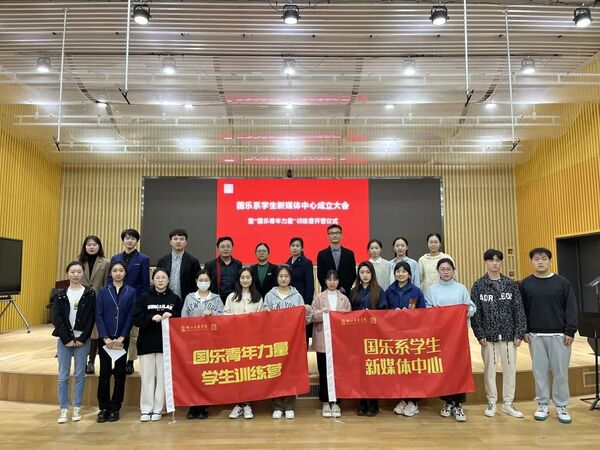会上,朱慧琴与徐晓昀为学生新媒体中心与“国乐青年力量”学生训练营授旗。朱慧琴希望学生骨干不仅要珍惜宝贵学习机会、发挥带头模范作用,更要在阅读和思考中开拓视野、注重积淀,积极参加社会实践;要处理好专业学习和社会实践之间的关系,在新媒体中心、训练营这两个创新平台下获得成长。徐晓昀表示,新媒体中心的成立是一次创新尝试,能够为同学们提供更多施展才华的空间,也能进一步展现国乐系的新气象、好氛围。刘彬对新媒体中心与学生训练营的同学们提出要求,一是珍惜时光,做好大学生涯的规划,扣好人生的第一粒扣子;二是全面提升,在提升专业技能的同时,拓展并提升自身素质,真正做到学有所获;三是明确目标,努力奋斗,创造属于自己人生的辉煌。他希望大家能够增强责任意识和主人翁意识,不断提高综合素养,为国乐系的发展添砖加瓦。