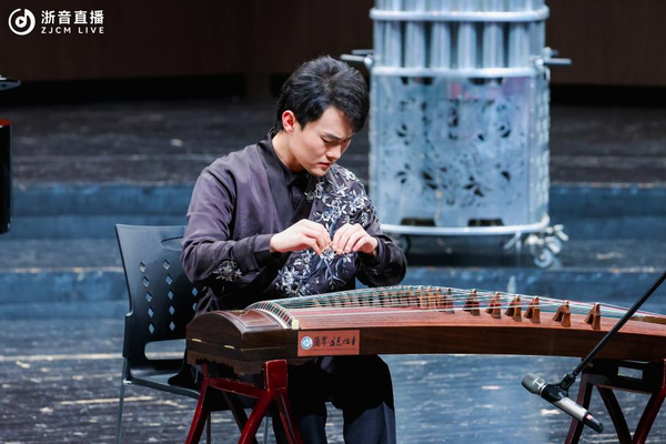 演奏会在一曲节奏快速而又充满活力的古筝五重奏《无穷动》中正式拉开序幕,作曲家覃锋达采用无穷动moto perpetuo这一音乐体裁形式,同时根据古筝的演奏方式和音韵特征,把民族旋律的音调揉入古筝的定弦中,再通过现代作曲技术手法来发展而成,塑造了骁勇善战的巾帼英雄形象。第二首作品是青年演奏家董鑫泽委约作曲家陈哲,为七声弦制筝与钢琴而作的系列筝曲《易》,用音乐展现中国的哲学思辨、逸致情怀、人生哲理。青年作曲家王瑟为4台古筝与电子音乐而作的《一念星辰》,结合现场美轮美奂的舞美灯光效果,为观众们带来了一次视觉和听觉的双重享受,呈现出“一念一星辰,所见皆所愿”的美丽神秘幻境。由3架古筝、二胡、打击乐、舞者与录音带而作的多元跨界古筝作品《偷影子的人》,更是向观众传递了民族器乐的在现当代的另类表达。随后是由作曲与指挥系副教授王云飞创作的民族室内乐版的古筝作品《碧莲》,作品根据雄安高铁站“青莲滴露,润泽雄安”的设计主题创作,展现时代新貌,唱响时代赞歌。