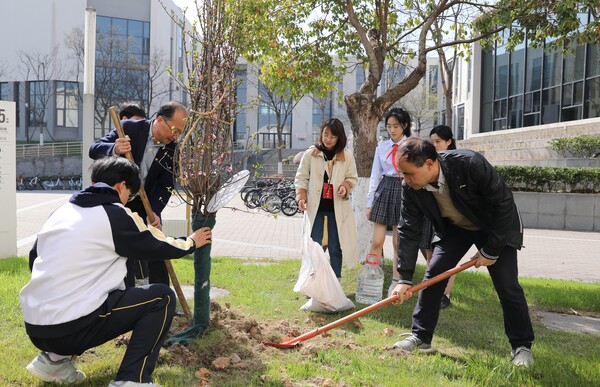 栽下希望、填满理想,用心呵护、洒满阳光。春光正好,又是一年一度植树节,3月13日下午,附中组织开展了“喜迎亚运会 共植希望树”活动,在附中教学楼门口种下寓意“坚韧不拔、奋勇当先”的红梅树。学院党委副书记王均寅,党委委员、宣传部部长、教师工作部部长李俊,团委和附中相关负责人、师生代表一起参与了本次活动。
