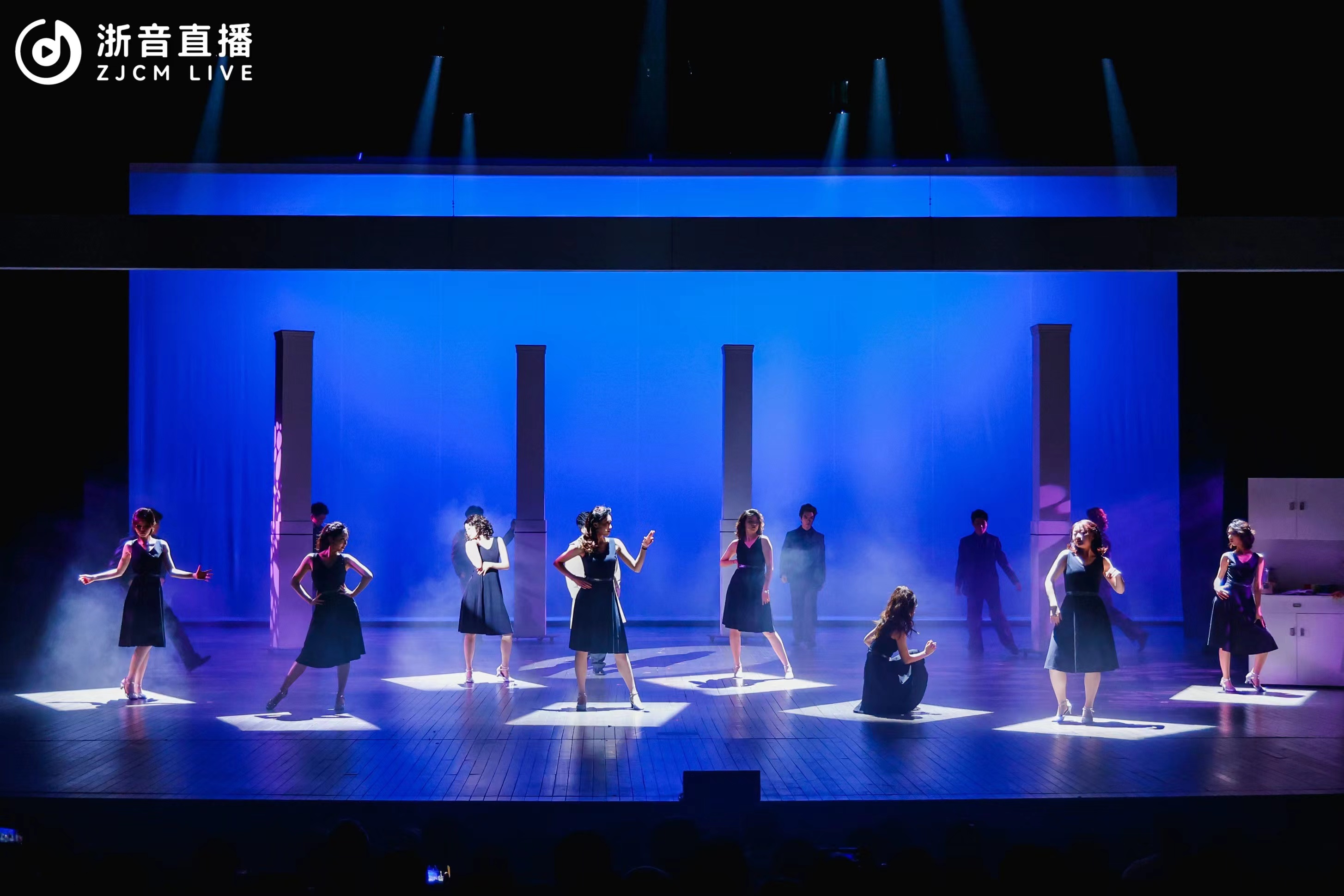 《朝九晚五》讲述了20世纪70年代,在职场屡受不公待遇的3个女性员工绑架了总经理,并通过模仿其签名来调整公司的一系列规章制度,最终成功改变公司面貌的故事,由音乐剧2019级毕业生担纲主演和主要演员,音乐剧2022级全班同学联袂助演,影视表演专业部分同学共同协作完成。连续3天的演出座无虚席,同学们形象幽默的人物塑造,精彩优美、富有张力的歌舞演绎,令观众报以热烈的掌声与持续不断的喝彩。本次演出作为“相约浙音”周末音乐会演出之一,以剧照图片形式进行了网络全程直播。