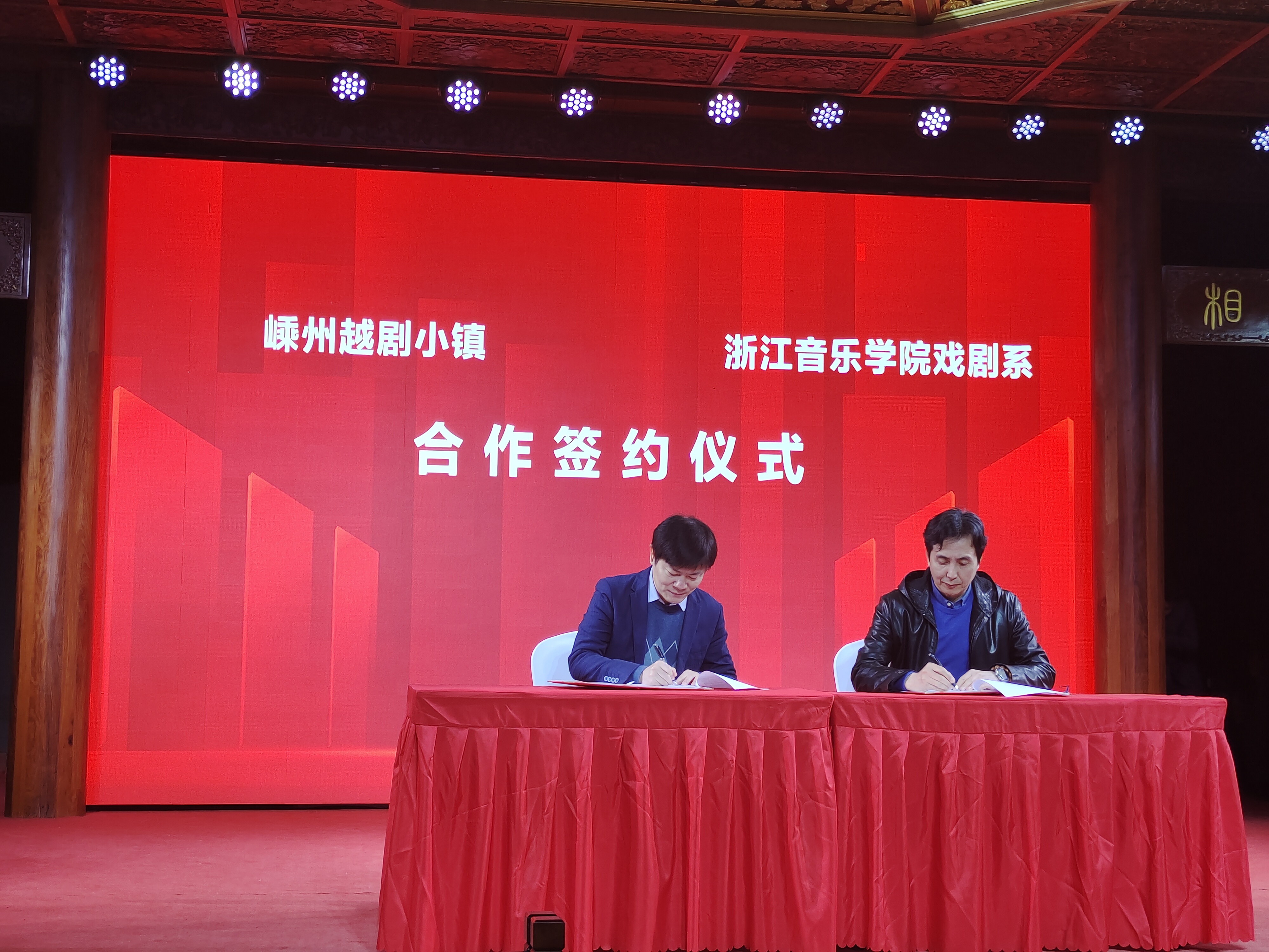近日,戏剧系与浙江嵊州越剧小镇共建实践基地的签约授牌仪式在顺利举行。戏剧系总支书记、副主任安怡一行,嵊州市文化广电旅游局党委委员、副局长施棋明,以及越剧小镇总经理杨岳、嵊州越剧艺术学校相关负责人参加。安怡和杨岳签订了共建实践基地协议并为基地授牌。
