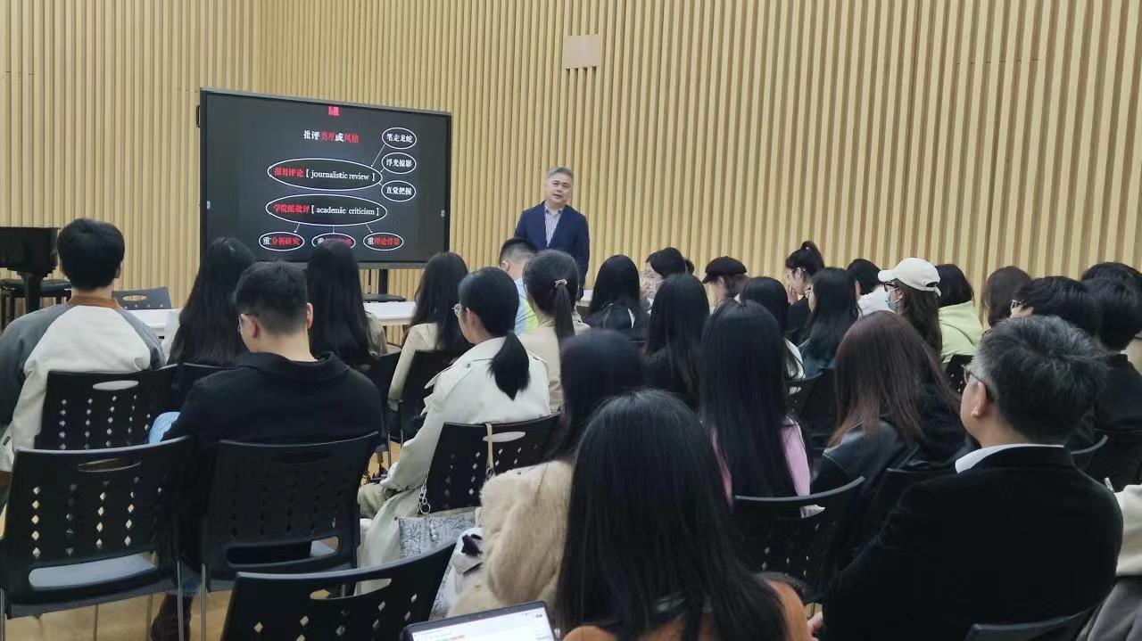 李诗原从音乐批评与当代歌剧两个层面展开论述。首先通过对音乐批评的内涵、风格类型与目的意义阐释,深入浅出地分析了当前音乐批评存在的现象与问题,提出“音乐批评应确定问题框架、保持本质探求,走出报刊评论,走出平面化,建构深度阐述模式”的观点;随后,他以中国当代歌剧及歌剧理论的发展现状为研究对象,表明自己对当下音乐批评与当代中国歌剧的一些看法与观点,深刻反思歌剧理论与歌剧评论二者的关系,认为歌剧理论既有学术性也有操作性,解答了“歌剧评论评什么”“歌剧评论怎么评”两个重要问题,并提出“理想歌剧”的理论假设,以及歌剧理论与歌剧评论应达成的4个共识与3个常识,提出“歌剧评论应成为真正的‘啄木鸟’”。李诗原教授的讲解生动形象、逻辑清晰、观点明确、思辨性极强。讲座持续进行两个半小时,全场座无虚席。在座师生聆听后反响热烈,纷纷表示收获满满、受益匪浅,特别是对我国音乐批评与音乐歌剧的发展现状有了更深刻的认识。