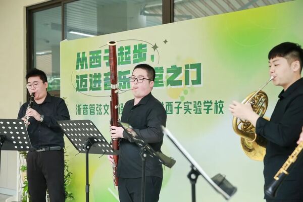 自学习贯彻习近平新时代中国特色社会主义思想主题教育开展以来,管弦系把学习贯彻习近平新时代中国特色社会主义思想摆在首位,结合专业特点,努力在以学铸魂、以学增智、以学正风、以学促干方面下功夫。此次“文艺轻骑兵”走进西子实验学校,正是管弦系积极投身主题教育,将学习成效转化为做好工作的生动实践。作为艺术实践基地,长期来,管弦系为西子实验学校提供了有关艺术方面的专业技术支持,还向学校师生提供艺术实践与交流的平台,引领西子实验学校的音乐教师不断提升教学研究能力。