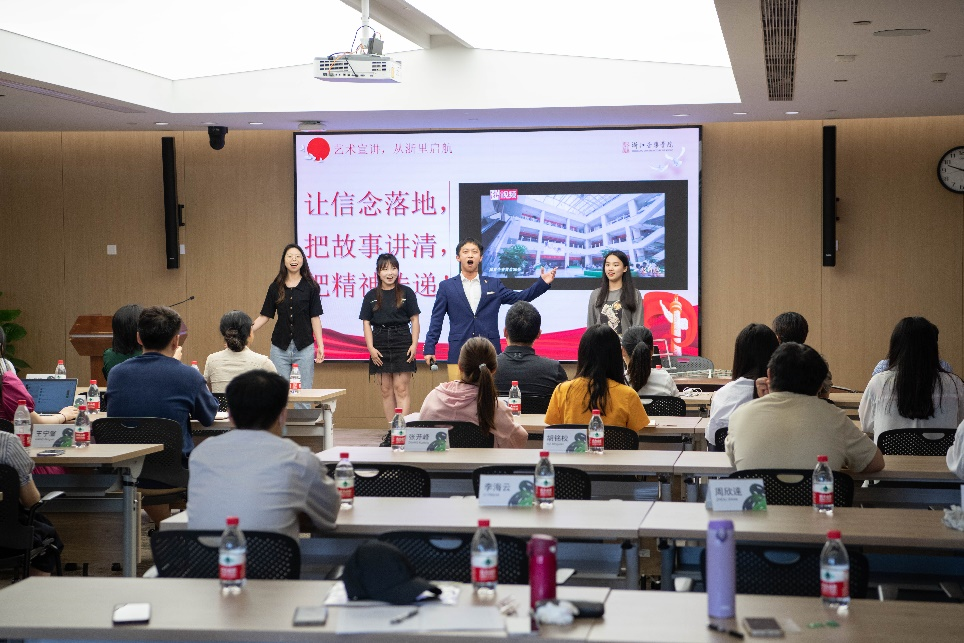 通过参观实验室展厅,广大团员青年认真了解了之江实验室的发展历程,学习了实验室“以无我之境打造战略科技力量”的担当精神,切实感受实验室勇攀世界前沿科技高峰的“科学精神、家国情怀”,感受到科技赋能艺术、赋能教育的创新机遇。在“‘八八战略’青年说”环节中,各单位青年代表结合各自领域,从艺术、科技等多角度围绕“八八战略”进行了精彩的理论宣讲。学院青年讲习所发起人、青年艺术家宣讲团成员祝艺校、季子瑶、蔡李琪、李妍、王嘉欣宣讲了《艺术宣讲,从“浙”里启航》,得到各单位代表的好评。