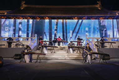 本场音乐会在呈现形式上突破了传统模式,在古筝的呈现语言之外,以情境舞蹈、吟诵表演、吟唱串联等为衔接手段,以南宋德寿宫建筑作为舞台空间、以宋词宋画等素材作为点缀,将演奏与视觉呈现、演奏与内涵呈现完美结合,实现了“音”“景”“境”“心”的四维统一,真正打造了一场沉浸式国风实景巨制,为杭州三江两岸音乐节的成功举办书写了浓墨重彩的一笔,更为杭州音乐文化建设贡献了力量。