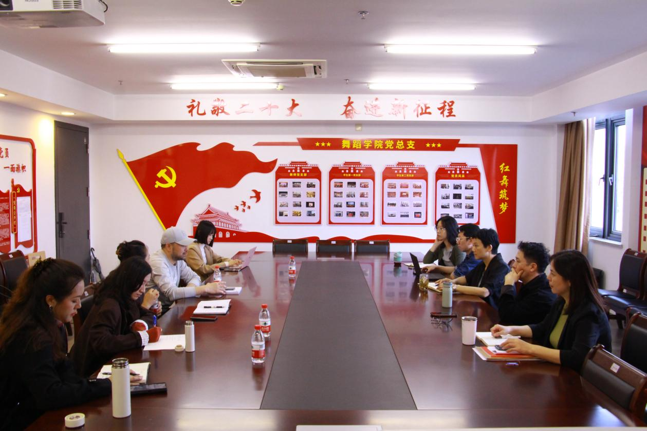 近日,北京舞蹈学院创意学院党总支副书记兼编导系党总支书记白凌教授一行来我校舞蹈学院交流访问,就舞蹈编导专业建设、人才培养及学科发展等话题展开讨论,舞蹈学院院长徐颃、书记叶坚琳及编导教研室主任黄德俊等人员出席会议。