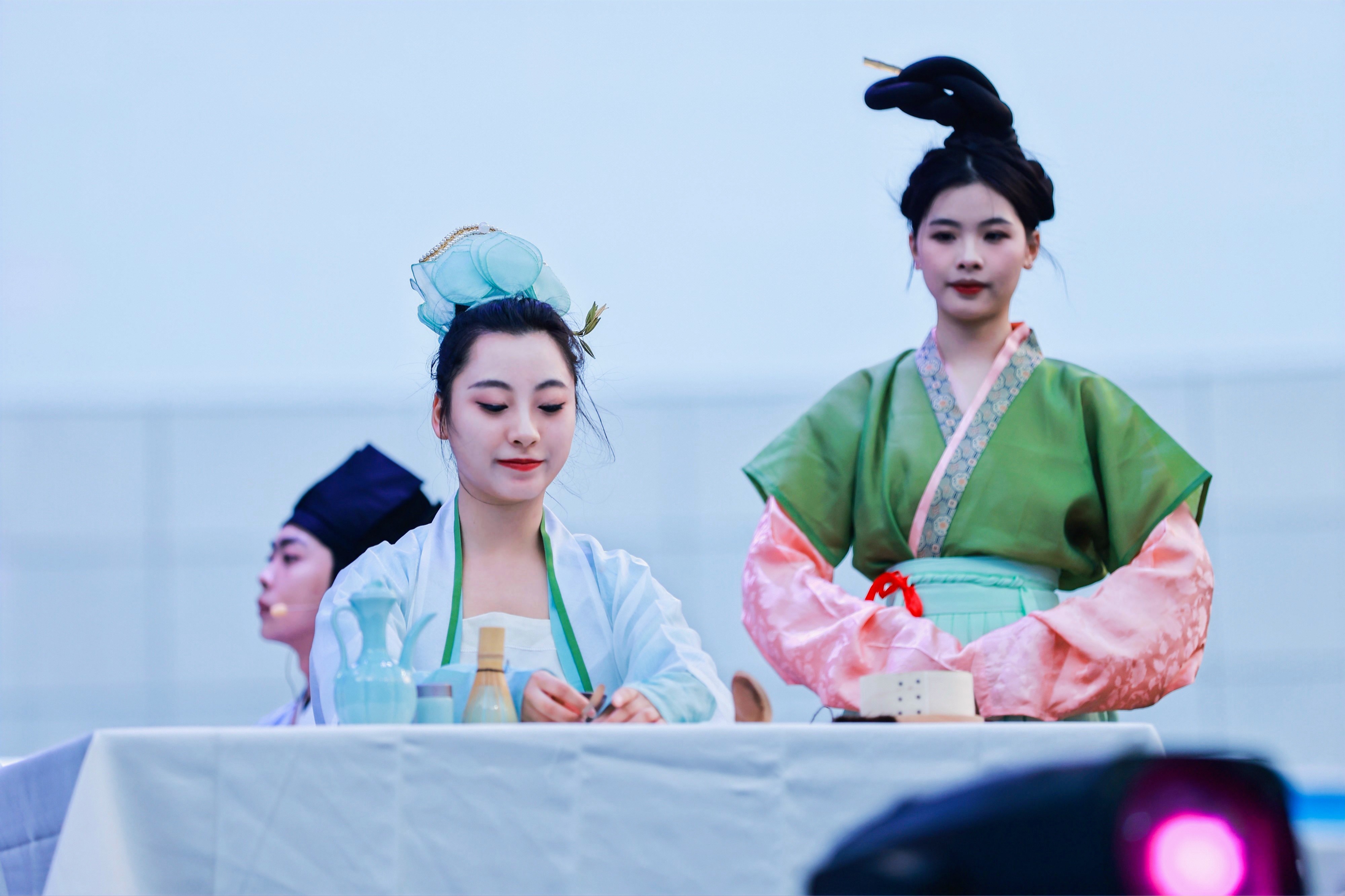 整场演出以场景式手法,将原汁原味的“径山茶宴”搬上舞台,通过汉服、古乐、朗诵等多种元素,沉浸式展示“径山茶宴”的十余道仪式程序,讲述径山千百年来的“茶人茶事”,以茶为媒、以茶会友,多视角呈现径山茶道的起源、茶文化交流和径山茶文化的活态传承和创造性转化、创新性发展。