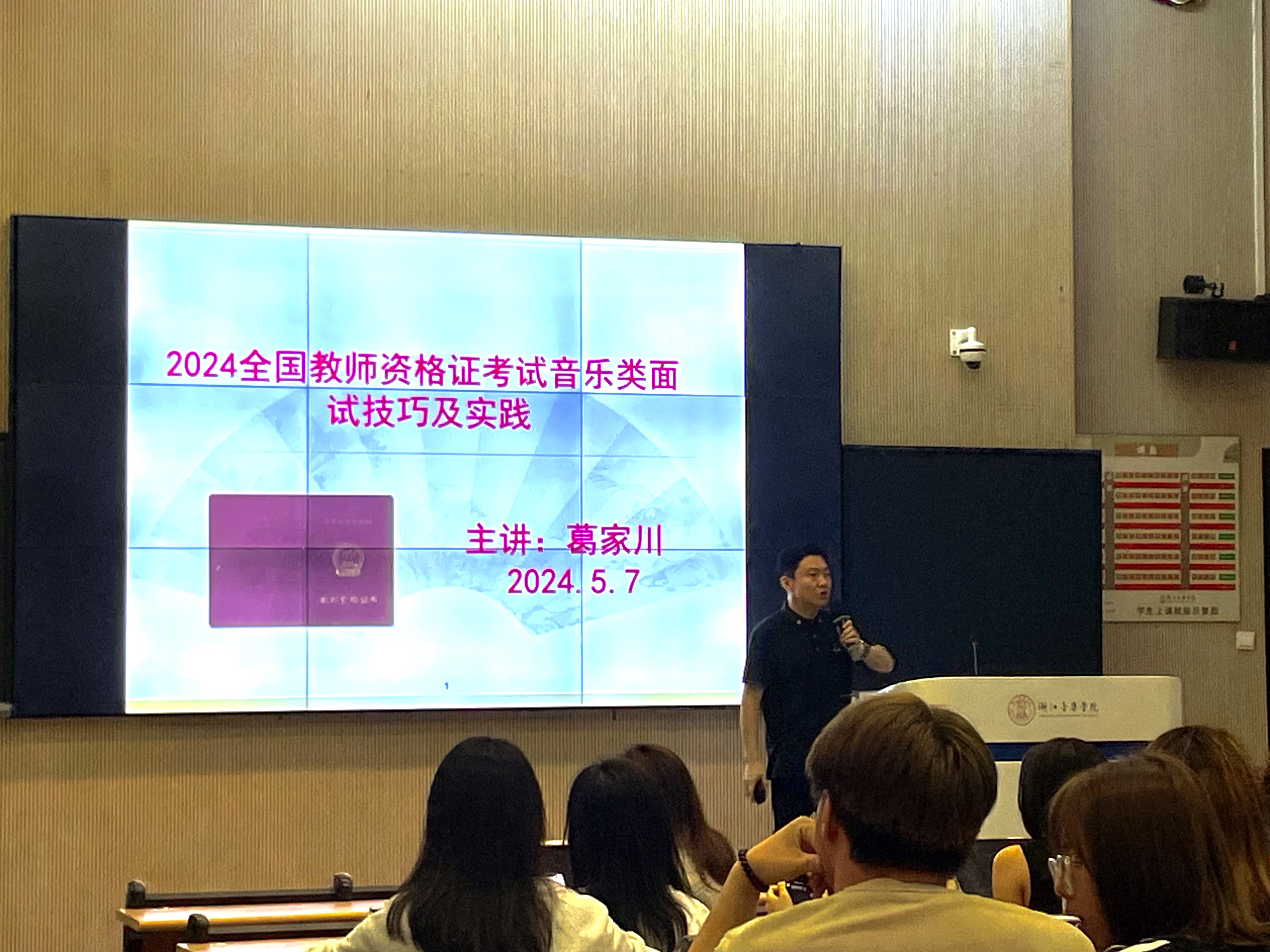 为帮助学生更深入地了解全国教师资格考试面试的流程和规则,提高面试技巧和竞争力,5月7日,音教学院开展2024届就业帮扶计划“职”为你来——全国教师资格考试面试技巧与实践培训会。杭州师范大学声乐副教授葛家川受邀作为本次培训会主讲,为浙音学子传授教资面试技能。