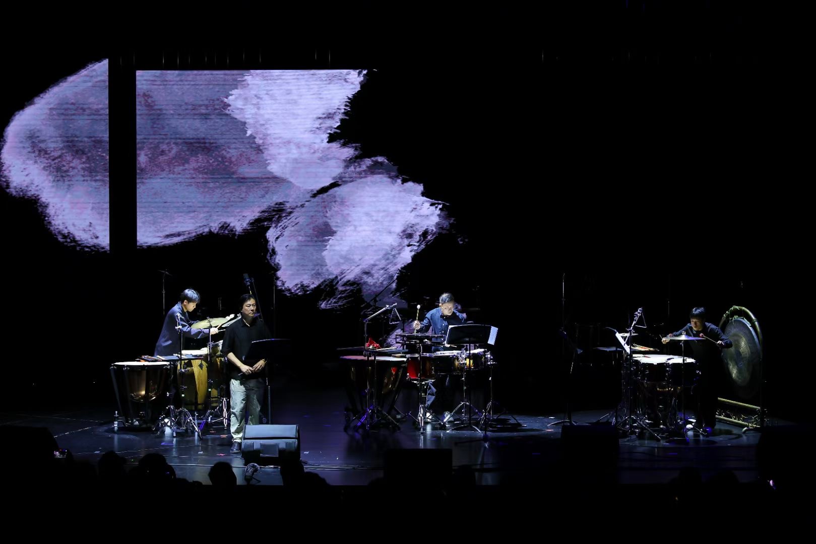 本场音乐会涵盖传统经典乐曲和当代原创作品,并通过跨界融合等方式创造听觉、视觉、联觉三位一体的新型舞台表现形式。开场曲目为瞿小松作曲的《定风波》,灵感来源于苏轼的同名词作,结合包括传统的中国打击乐器和西方现代打击乐器在内的多种打击乐器,通过丰富的音色和节奏变化,创造出多层次的听觉体验,展现了丰富的表现形式和艺术内涵。随后上演的《sand box》充满互动性、趣味性,4位演奏者扮作超级马里奥演出,以灵动表演和精彩演奏调动现场热烈气氛。作为本场音乐会主打作品,《和合》运用结合了听觉、视觉、联觉三位一体的新型舞台表现形式,用LED视频配合多样的表现手法和高深的演奏技巧,呈现了人、自然、社会交融的一系列深刻内涵。