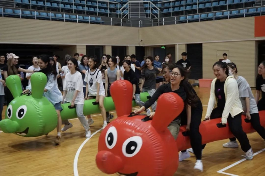 此次趣味运动会比赛项目丰富,既有展现力量的拔河比赛,还有充满趣味性的毛毛虫运动;既有考验跑步技能的接力比赛,又有考验默契能力的四人五足。每一项活动都充分体现了选手们的团队协作能力,吸引了众多学生的关注和参与。参赛者们斗志昂扬、精神抖擞,充分发挥自己的特长,全力以赴,争取好成绩。现场欢声笑语此起彼伏,加油呐喊连绵不绝,气氛热烈而紧张。经过激烈的角逐,各班均取得了优异的成绩,展现了戏剧系学生们的竞技水平和团队精神。班主任的拔河比赛、抢零食大战、套圈游戏更是一度将现场气氛推至最高潮,有效增强了师生之间的亲密感和归属感。