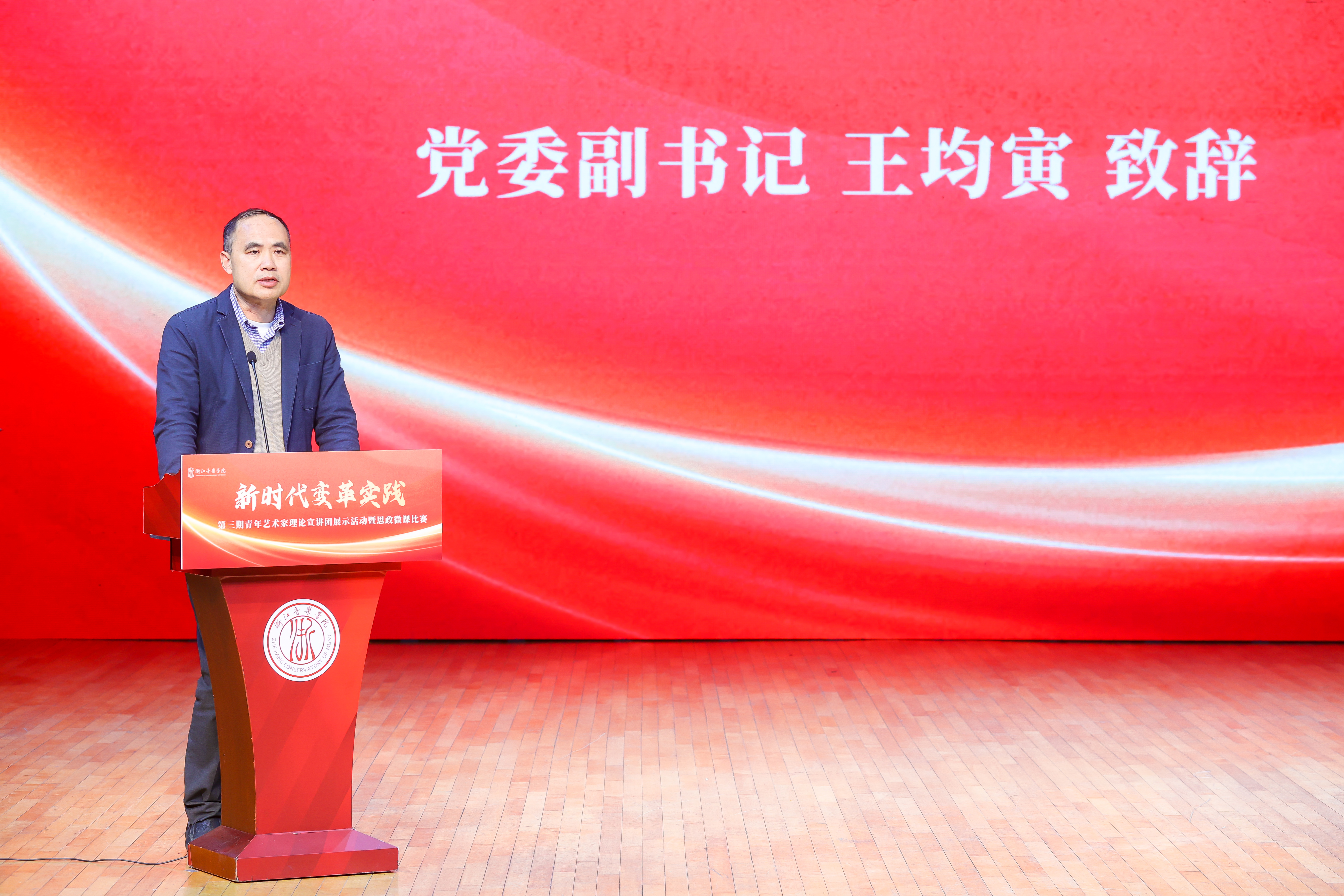 3月20日下午,学院第三期真理的味道·青年艺术家理论宣讲团宣讲展演暨思政微课比赛在现代音乐厅顺利举办。宣讲展演以“新时代变革实践”为主题,通过“艺术+宣讲”的方式,为师生带来了一场理论宣讲与美学表达深度融合的思政盛宴。党委副书记王均寅,党委委员、宣传部部长、教师工作部部长施莹出席,相关职能部门负责人、各二级党组织负责人以及宣讲团成员、师生代表参加。