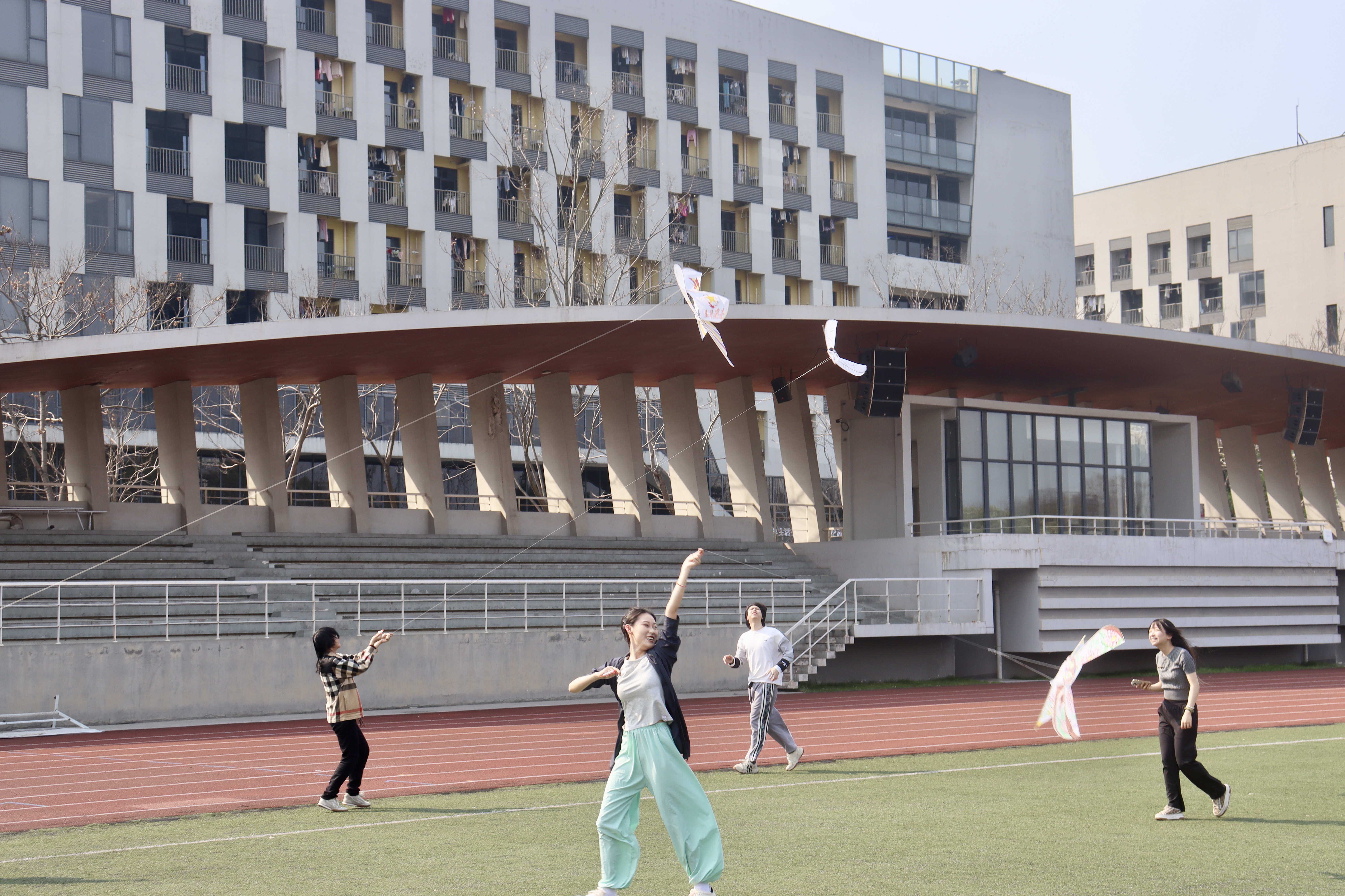 随着几十只只彩绘风筝升空,活动进入欢腾的放飞环节。学生们手持线轴在绿茵场上奔跑协作,春风中翻飞的纸鸢与跃动的身影相映成趣,既是对"浙青年爱运动"的生动诠释,也在户外运动中传递着蓬勃朝气。活动现场,传统文化与现代青春在风筝线上交织——古法制鸢技艺的展示、青年学子奔跑时挥洒的汗水,共同勾勒出健康向上的校园图景。