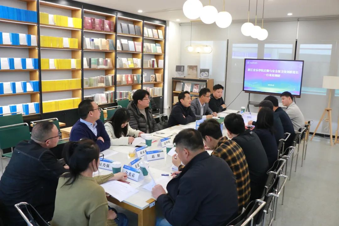 浙大城市学院安全保卫部部长潘燕军及相关职能负责人热情接待了我校调研团队,并在晓枫书屋开展座谈会。双方围绕5A级平安校园创建工作的具体举措、特色做法等方面展开了重点交流。综治办负责人介绍了我校等级平安校园建设工作开展情况和亟待解决的实际问题,并对浙大城市学院给予本次调研学习的支持与帮助表示衷心感谢。潘燕军部长围绕由来、当下、节奏、标准、工作五个方面分享了平安校园创建实施要点与路径。