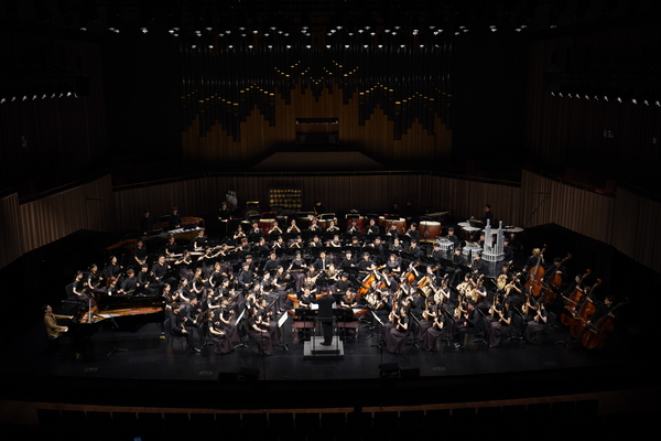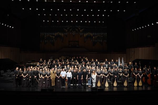 下半场,唐建平的《后土》以民族乐队语言诠释中华民族特有的土地信仰,独特的配器音响效果表达了对大地和自然的歌颂。全曲的律动中都暗喻着中华文明承古启今的永恒征程。最后,音乐会在王甫建教授创作的《大梦寥廓》中落下帷幕,钢琴与弹拨乐展开时空对话,弹拨乐高音区的华彩乐章展现精卫填海的勇气,乐队强劲的对位抒发了夸父逐日的豪迈,曾经“问苍茫大地,谁主沉浮”的千古叩问在变迁中升华成民族复兴的时代强音。