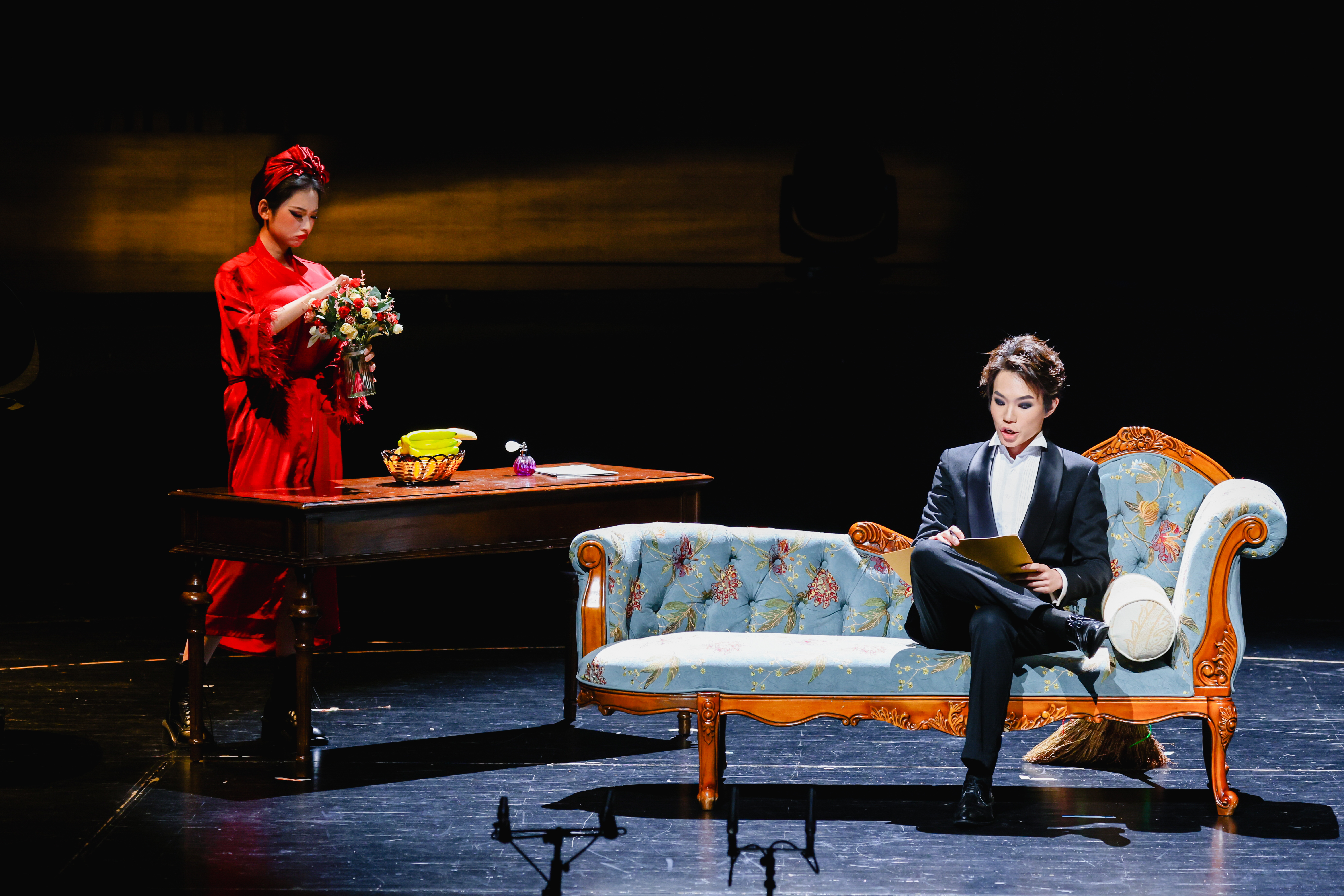 普朗克《蒂蕾西亚的玛梅尔斯》以黑色幽默叩问性别与自由,在棱镜第一面折射出冷冽锋芒。赵一鸣(饰导演)以《观众们,屏息以待》拉开序幕,其冷峻的舞台掌控力,折射出导演刘明阳对现代戏剧节奏的精准雕琢;《不,他是我的丈夫》中,陈艺田以极具爆发力的花腔与叛逆的肢体语言,塑造了一个挣脱世俗枷锁的先锋女性形象,艺术总监孙秀苇更欣慰于她对角色超乎预期的掌控;周子泰与王凌峰在《和你在一起,拉库夫》中以诙谐对唱演绎市井小民的荒诞纠葛,而终曲《啊,亲爱的自由》则由陈艺田、易浩扬与合唱共同演绎一场超现实主义的狂欢。