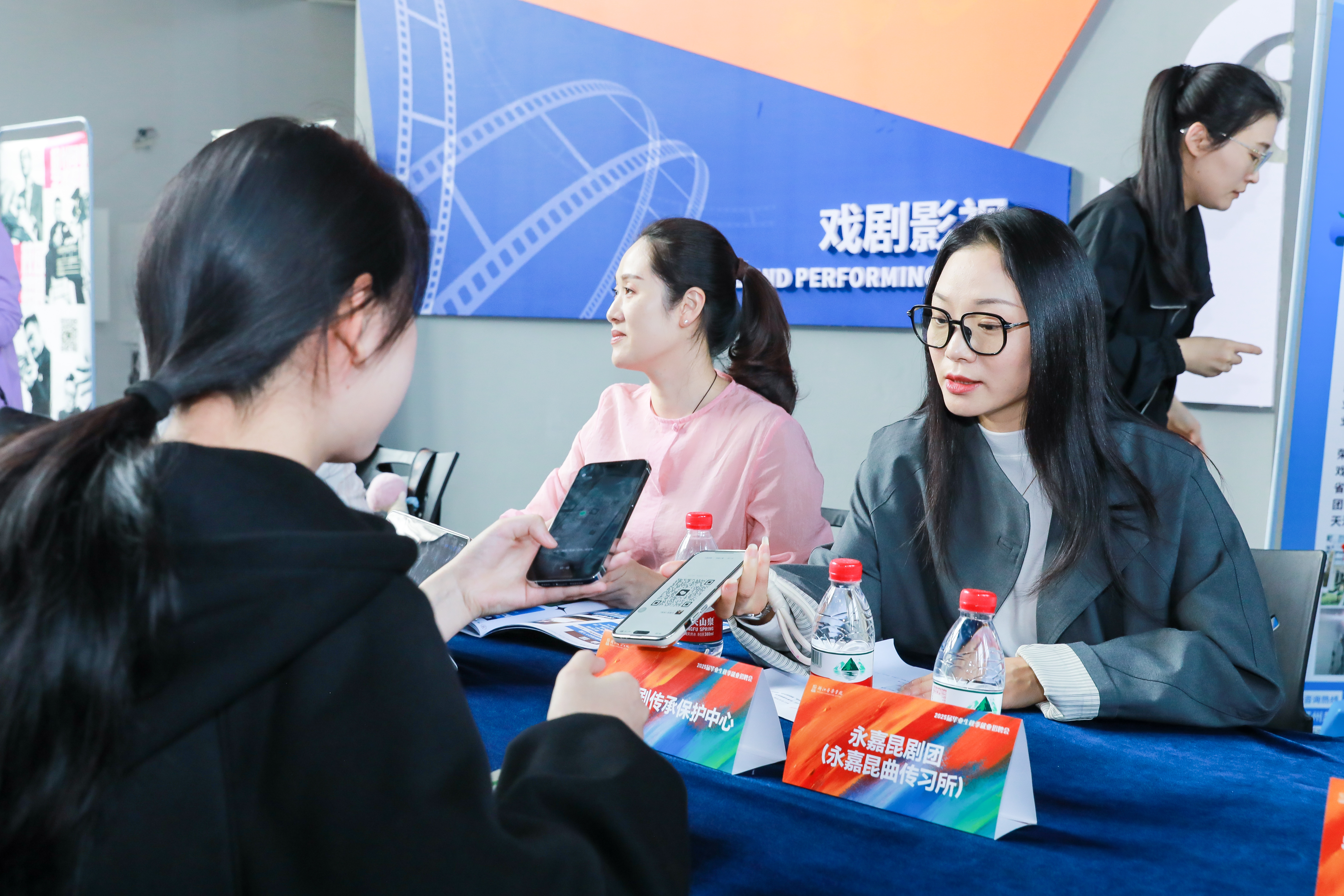 为精准化落实高质量充分就业,学校实施“将招聘会开在舞台上”的重要举措,本次招聘会的一大亮点就是设置“戏剧专场招聘会”。拥有四个表演专业的戏剧系,主动邀请30余家省内外专业院团现场观看、现场选聘人才,实现沉浸式双选。此外,戏剧系还专门设计了《2025届毕业生推介手册》,直观、全面地展示了戏剧系毕业生的形象、专业和特长,受到了用人单位的一致好评。