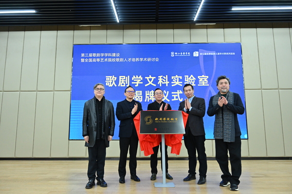 刁玉泉、王瑞,著名歌剧表演艺术家魏松,著名编剧、中国歌剧舞剧院徐瑛,上海音乐学院贺绿汀中国音乐高等研究院高级研究员李诗源为“歌剧学文科实验室”揭牌。