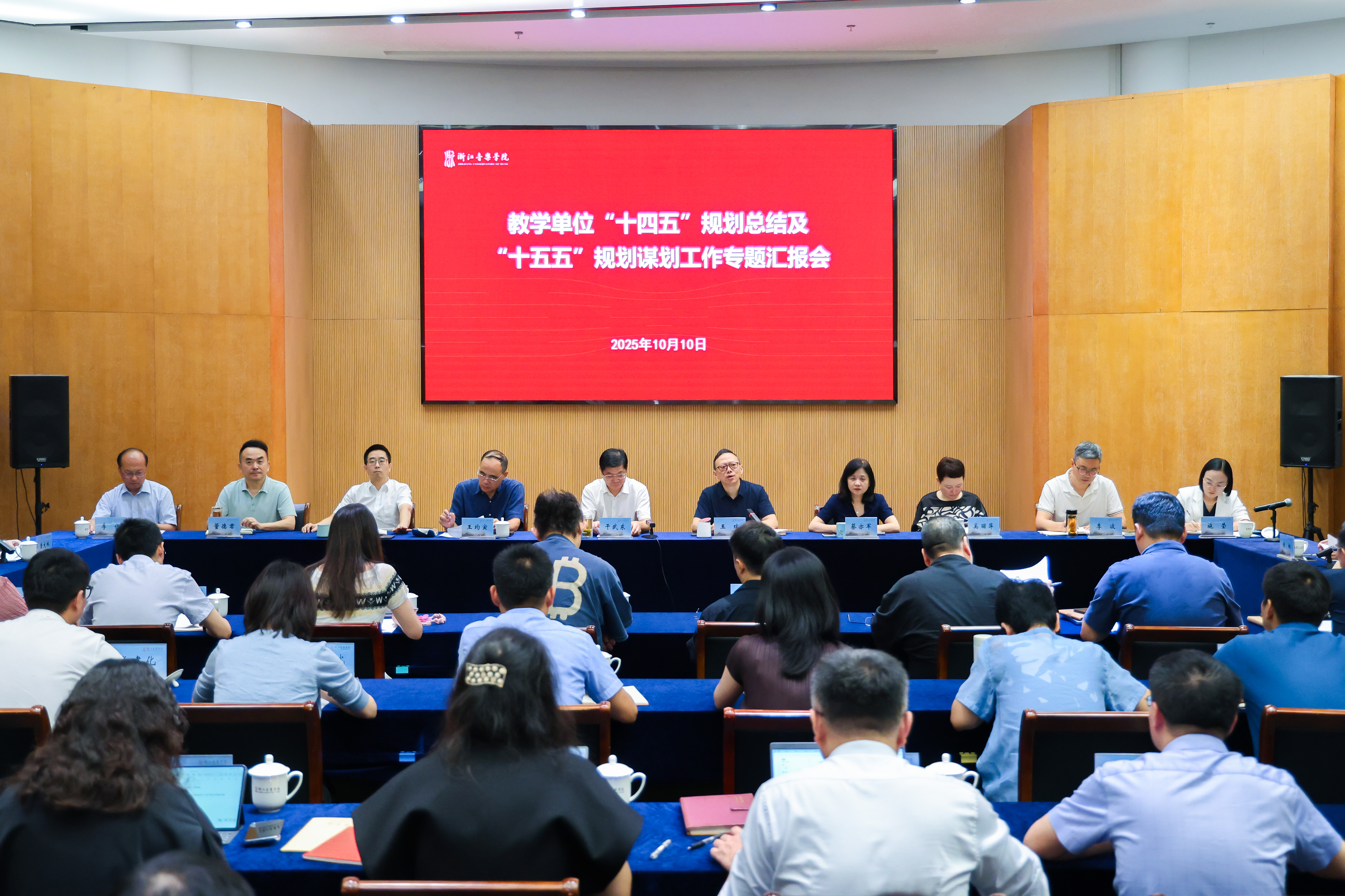 院长王瑞主持会议。他对各教学单位“十四五”以来取得的显著成绩给予了充分肯定,结合学院发展实际进行形势分析,并对“十五五”规划工作提出明确要求。一是找准目标和方位,坚定发展信心。学院在“十四五”期间实现了跨越式发展,整体呈现出良好态势。各教学单位已形成特色鲜明的发展路径,学院综合实力显著提升,为“十五五”高质量发展奠定了坚实基础。面对新征程,我们要乘势而上,以坚定的信心推动事业再上新台阶。二是正视存在的问题,精准补齐短板。要清醒认识到各教学单位在发展过程中仍存在的不平衡现象,部分领域基础相对薄弱,在制度建设和工作落实的扎实性、有效性方面仍需持续用力,要着力破解这些发展中的深层次问题。三是明确努力的目标,实现重点突破。要强化内涵式发展,提升国际化办学水平,扩大开放格局,真正将“十五五”发展目标转化为自觉行动,团结协作、勇于担当,以开放、创新、务实的态度共同推动浙音迈向更高水平发展。